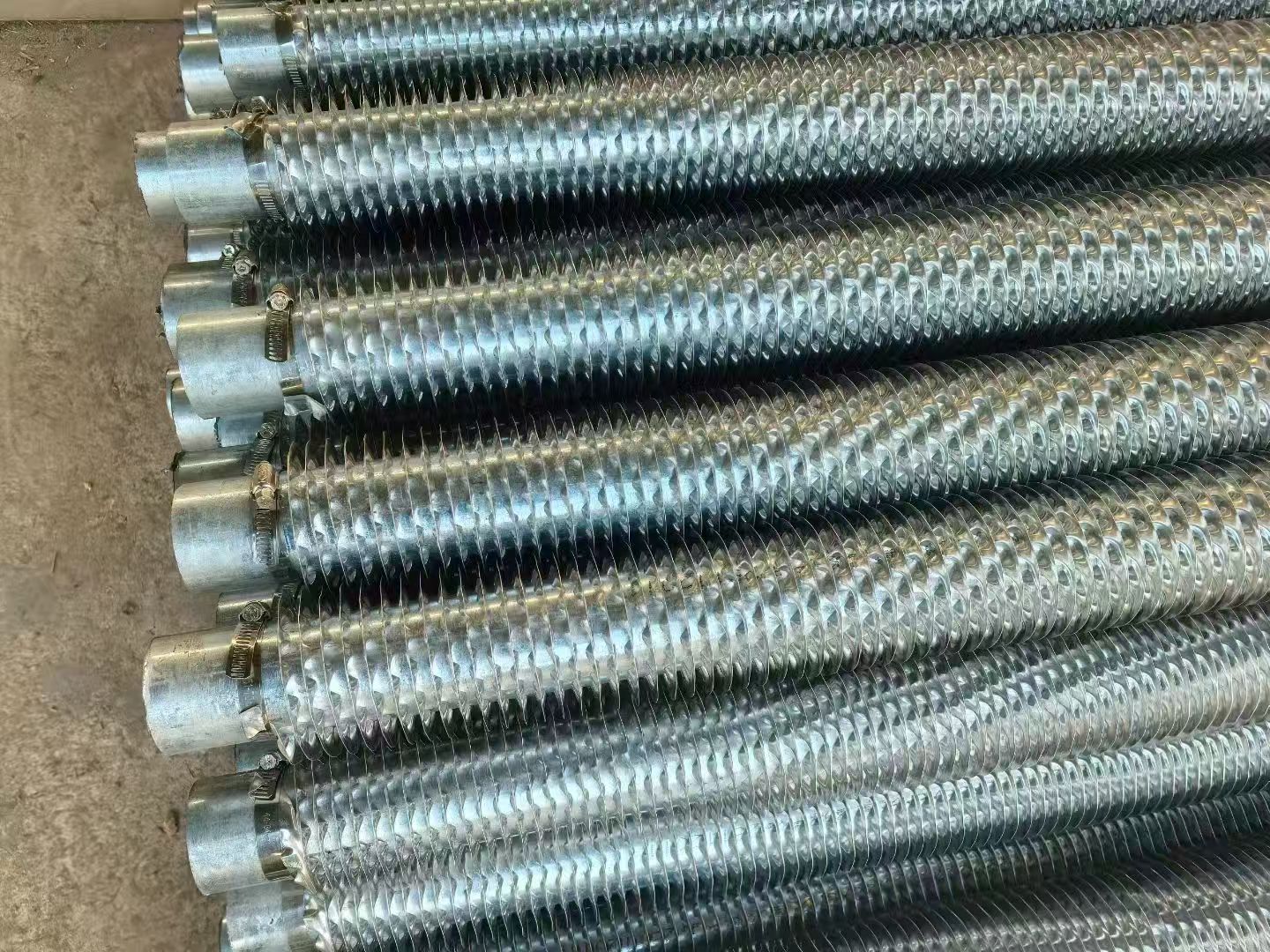 廣西玉林釬焊螺旋翅片管釬焊螺旋翅片管的加工分兩步進行。首先,將鋼帶平面垂直于管子軸線按螺旋線方式纏繞在管子外表面上,并把鋼帶兩端焊在鋼管上固定,然后為鋼帶和鋼管接觸處的間隙,用釬焊的方法將鋼帶和鋼管焊在一起。此種方法因其造價昂貴,故常用另一種方法,即將纏好鋼帶的管子放進鋅液槽內(nèi)進行整體熱鍍鋅來替代。采用整體熱鍍鋅雖然鍍液不見得能很好地滲進翅片和鋼管之間極小的間隙,但在翅片外表面和鋼管外表面卻形成了一個完整的鍍鋅層。采用整體熱鍍鋅的螺旋翅片管,因為受到鍍鋅層厚度的限制(鍍鋅層厚時,鋅層牢固性差,易脫落),加之鋅液不可能全部滲入間隙內(nèi),所以,翅片與鋼管的結(jié)合率仍不高。另外,鋅的傳熱系數(shù)比鋼?。s為鋼的78%),故傳熱能力低。鋅在酸及堿、廣西玉林附近硫化物中極易遭受腐蝕,因此,用鍍鋅螺旋翅片管不適于制作空氣預熱器(回收鍋爐煙氣余熱)。