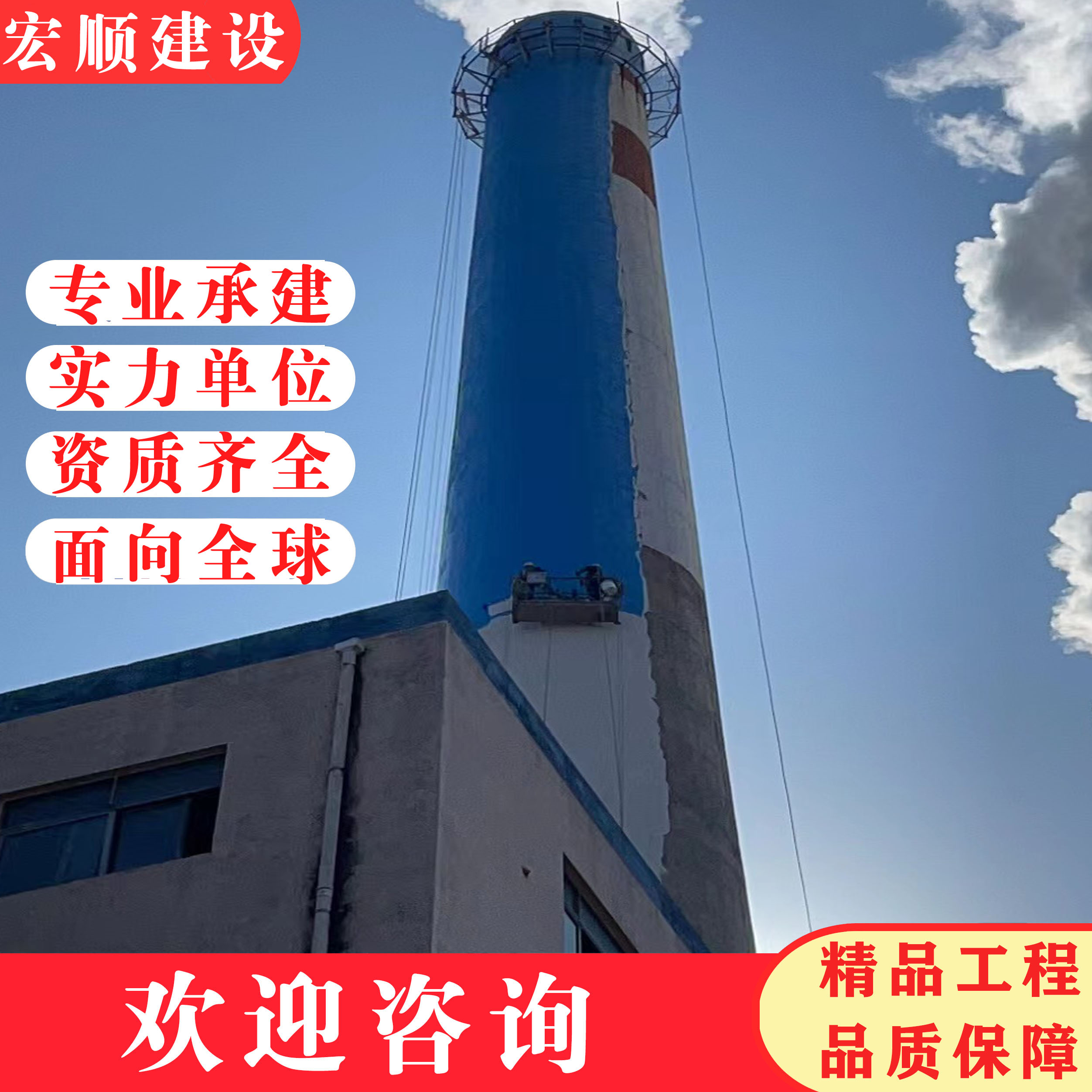 煙囪美化彩繪的涂刷工藝:人工涂刷醇酸磁漆,共涂刷兩遍,顏色按照設(shè)計(jì)要求為紅色 3 環(huán)、貴州本地白色 3 環(huán),紅白相間布置,每道色環(huán)間距 5 米。在涂刷過(guò)程中,需確保漆面均勻、貴州當(dāng)?shù)責(zé)o漏刷、貴州附近無(wú)流掛現(xiàn)象,且色澤鮮艷、貴州同城色調(diào)一致。以專業(yè)筑造精品,以匠心共筑美好世界!如需了解具體項(xiàng)目報(bào)價(jià)或技術(shù)方案,歡迎隨時(shí)聯(lián)系宏順建設(shè)工程有限公司!