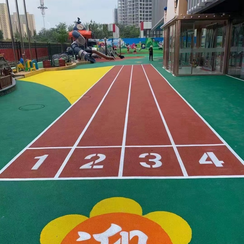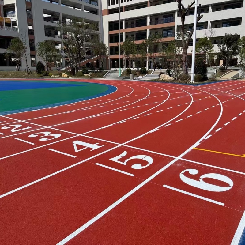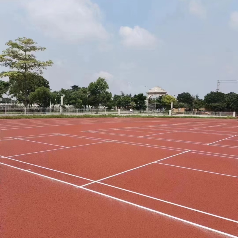 基礎地面處理完畢后,刮涂一層界面劑以便形成密閉層。接著刮涂彈性層,一般情況下,每道涂2MM厚,干透后,再涂下一道。直至刮涂到客戶要求的厚度。后,就是刮涂面漆了,使用的材料都是綠色環(huán)保的。這些工作做完后,就可以用的畫線漆按照標準圖進行畫線了。 塑膠跑道廠家選擇體育。從事塑膠跑道材料、地坪漆施工、球場籃球場施工、塑膠跑道施工,球場地坪漆生產(chǎn)銷售于一體的生產(chǎn)廠家,國內(nèi)數(shù)千家學校和企業(yè)選擇了作為合作伙伴,地坪漆批發(fā)廠家選。咨詢藍球場和地坪漆球場都是非常常見的球場,這兩者所用的球場材料也有所不同。 同為綠色環(huán)保產(chǎn)品,都是用于球場建造的兩種材料,那么硅PU和地坪漆材料二者怎樣區(qū)分呢。材料構成藍球場:藍球場材料是在PU球場材料的基礎上研制出來的新一代球場鋪面材料;該材料是以PU材料與含有機硅成分的材料科學地復合在一起,所生產(chǎn)出來用在球場面層上的材料。 「完工后,面層厚度3--8mm」藍球場材料彈性理想,防滑適中,舒適耐用,耐磨損,耐油污,耐候性強,可全天使用;平整美觀易于清潔,色彩搭配多樣。地坪漆球場:采用優(yōu)質的地坪漆面層涂料加一定比例的石英砂和水配比而成,屬于水性原料。