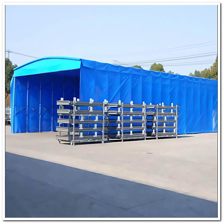廣東某電子配件廠(chǎng)在月臺(tái)通道安裝推拉雨棚后,雨季貨物淋濕率下降90%。其可伸縮設(shè)計(jì)允許貨車(chē)直接對(duì)接裝卸,避免二次搬運(yùn)損失 臨時(shí)生產(chǎn)延伸浙江五金加工企業(yè)利用雨棚快速搭建臨時(shí)焊接區(qū),棚頂阻燃材料通過(guò)B1級(jí)防火認(rèn)證,配合側(cè)簾防塵網(wǎng)實(shí)現(xiàn)作業(yè)環(huán)境升級(jí)。