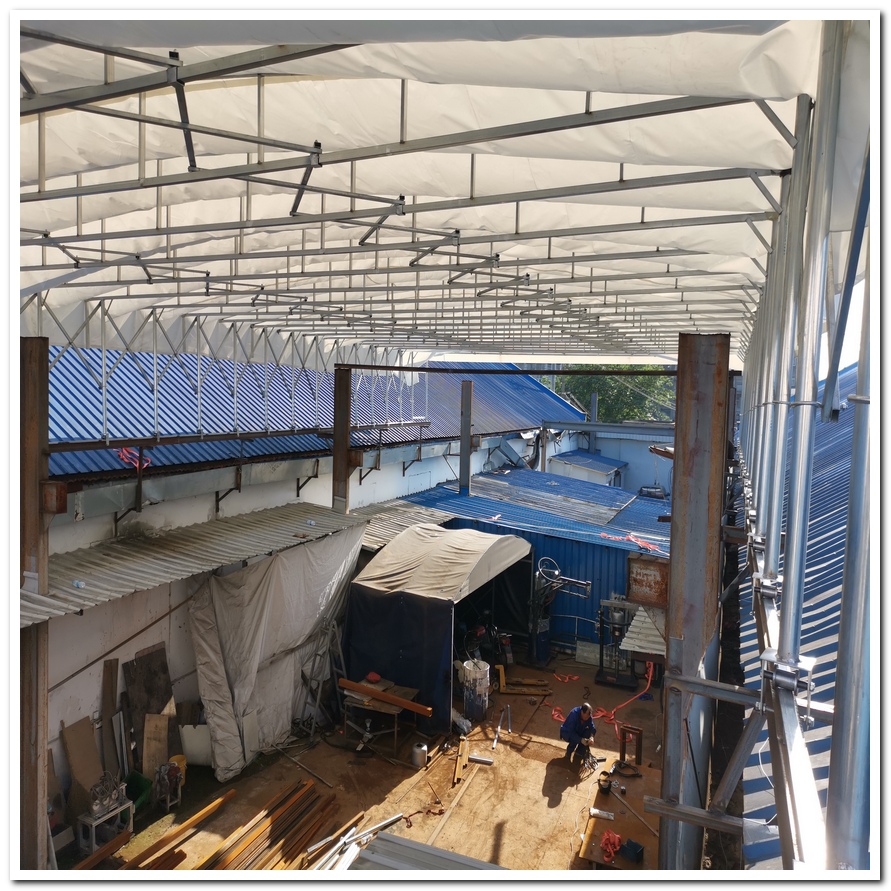鴻禧移動推拉伸縮大篷室內(nèi)用途允許曲率半徑。(R)需超過板厚的150倍以上。實(shí)例:如:3mmPC板用于室外,其曲率半徑應(yīng)為:3mm180=540mm=54cm所以設(shè)計(jì)的曲率半徑至少要大于54cm,可參見很小彎曲半徑表。曲率半徑(R)小于板厚的180倍時(shí),彎曲施工須采用熱成型,如真空成型就是熱成。型的方式之一,但如果熱成型的溫度高于120℃時(shí),則要先將保護(hù)膜撕去,再進(jìn)行熱成型。允許撓曲角度θ:如右圖所示彎曲的中心角度θ須小于或等于90,若大于90則在小。于90的部分須加補(bǔ)強(qiáng)框條。PC板表面灰塵,污物一般先用軟質(zhì)布。或海綿沾中性清潔劑擦拭。再用清水有效沖洗,較后以軟質(zhì)布擦干。如需使用溶劑清潔時(shí),切記大部分的溶劑,如、六安壽縣同城、六安壽縣本地汽油、六安壽縣附近四氯化碳等。
